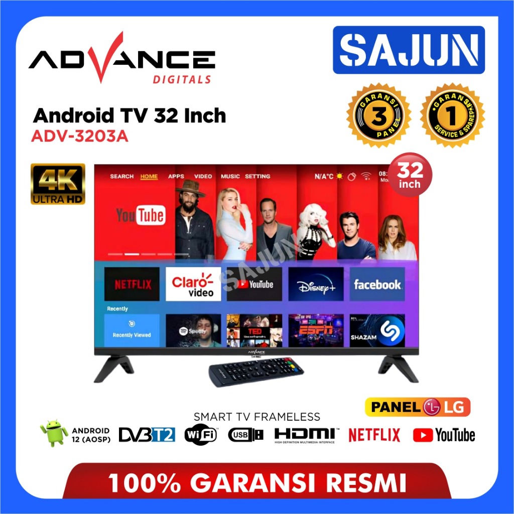 Advance Android Smart TV 32 Inch ADV-3203A TV LED Digital Frameless ADV3203A